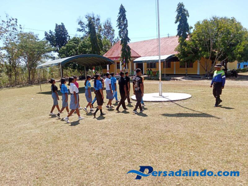 Babinsa Koramil 1618-04 Bisel Serka Legius Ludji Leo dan Sertu Wilfridus Molo bersama Babinkamtibmas Bripka Timoteus Tebby Oeleu melaksanakan pelatihan Paskibraka di lapangan kantor camat Biboki Tanpah, Kabupaten TTU.