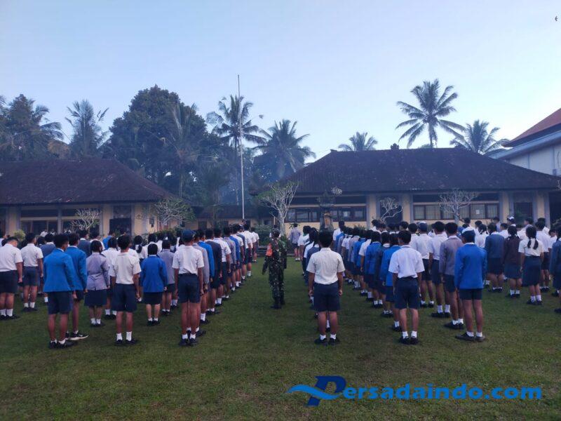 KARANGASEM – Personel Koramil 1623-03/Rendang dipimpin Serka Dewa Made Suarjana melaksanakan pelatihan peraturan baris berbaris (PBB) kepada siswa-siswi SMA N 1 Rendang dalam rangka masa pengenalan lingkungan sekolah (MPLS), di Lapangan SMA Negeri 1 Rendang Dusun Bangbang Desa Rendang Kec.Rendang Kab.Karangasem, pada Senin (21/07/25).
