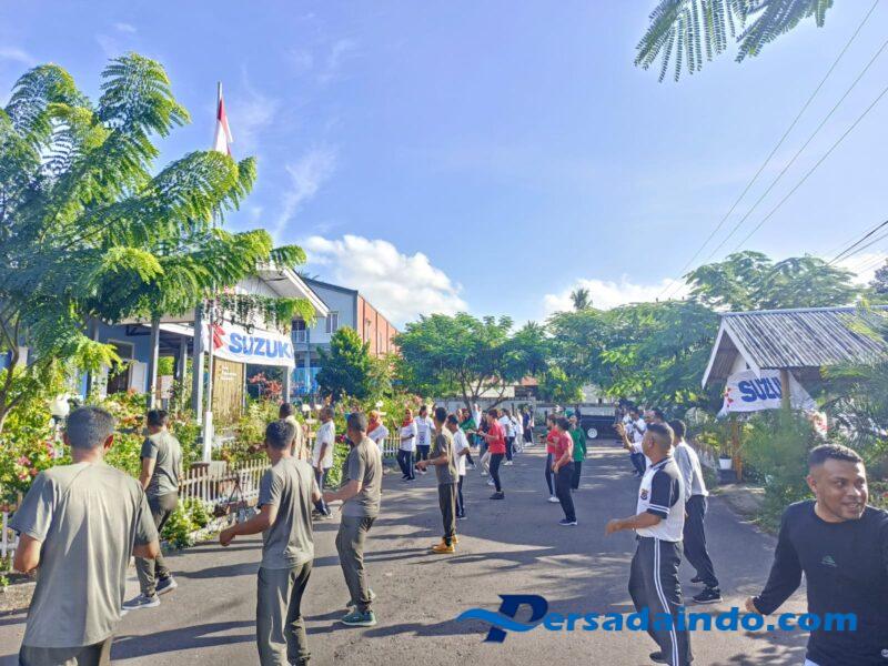 Flotim – Anggota Koramil 1624-02/Adonara bersama Aparat Desa dan Masyarakat melaksanakan senam bersama untuk meningkatkan imun tubuh, di Lapangan Kecamatan Adonara Timur, Kabupaten Flotim. Jumat (13/06/2025).