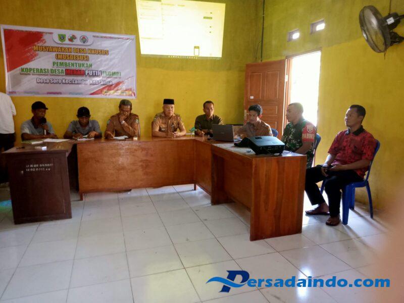 Lambu-Bima, Selasa, 27 Mei 2025, Sertu Jafar, anggota Posramil Ramil Lambu Koramil 1608-03/Sape, menghadiri Rapat Musyawarah Desa Khusus (MUSDESSUS) yang digelar di Desa Soro, Kecamatan Lambu, Kabupaten Bima. Rapat ini membahas pembentukan Koperasi Desa Merah Putih (KDMP) sebagai langkah awal untuk meningkatkan kesejahteraan dan kemandirian ekonomi masyarakat desa.