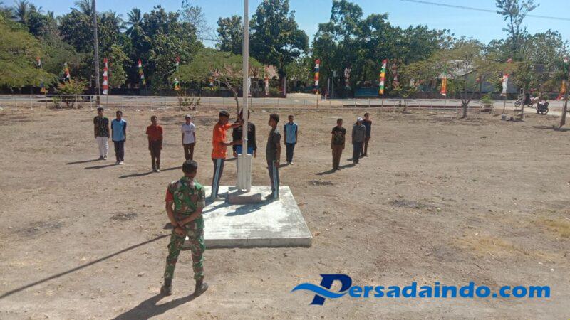 Lebatukan, – Babinsa Koramil 1624-03/Lewoleba, Serda Ibnu Chalid Gehak A. Bethan dan Praka M. Ridwan Hidayat, bersama Bhabinkamtibmas Kecamatan Lebatukan, melaksanakan pelatihan calon Paskibraka tingkat Kecamatan Lebatukan di Lapangan Upacara Kantor Camat Lebatukan, Desa Hadakewa, Kecamatan Lebatukan, Kabupaten Lembata. Selasa, 12 Agustus 2025