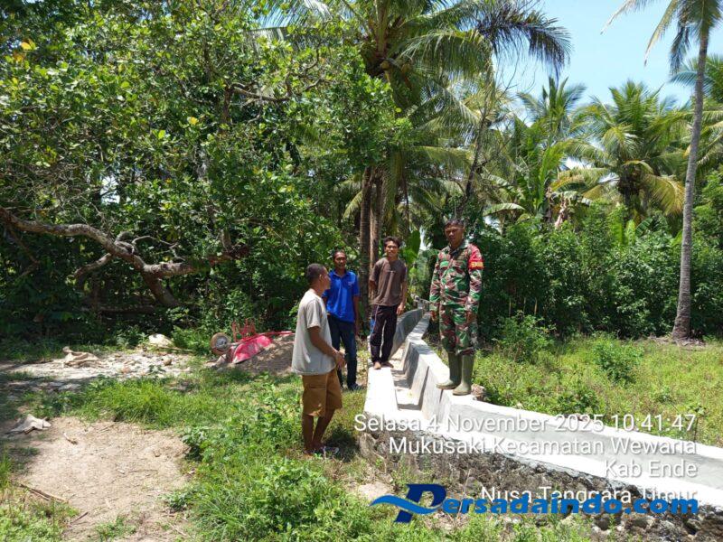 Ende, – Babinsa Koramil 1602-03/Detusoko, Kopda Yosef Siga, melaksanakan kegiatan pendampingan dan pengawasan pembangunan irigasi sepanjang 300 meter bersama Kelompok Tani Embu Lesu di Desa Mukusaki, Kecamatan Wewaria, Kabupaten Ende. Kegiatan ini juga dihadiri PPL Bapak Yunus serta Ketua UPKK Bapak Alfonsius Nira Jhada.