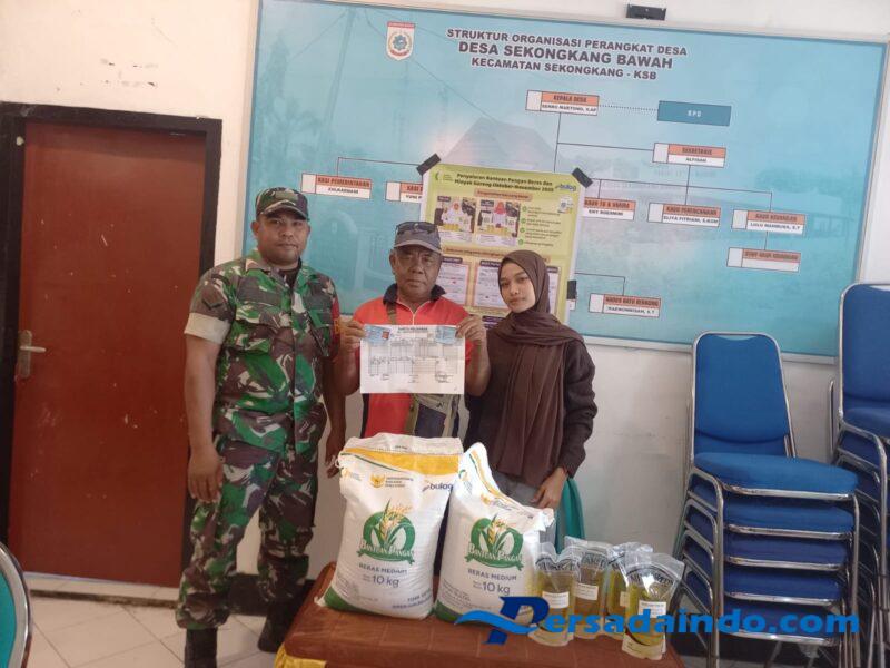 Sumbawa Barat, NTB – Anggota Koramil jajaran Kodim 1628/Sumbawa Barat kembali melaksanakan tugas pendampingan dalam penyaluran bantuan pangan kepada masyarakat. Babinsa Desa Sekongkang Bawah, Serda Syamsul Hadi, turut mengawal kegiatan distribusi bantuan berupa beras dan minyak goreng untuk warga prasejahtera bertempat di Desa Sekongkang Bawah, Kecamatan Sekongkang Kabupaten Sumbawa Barat.
