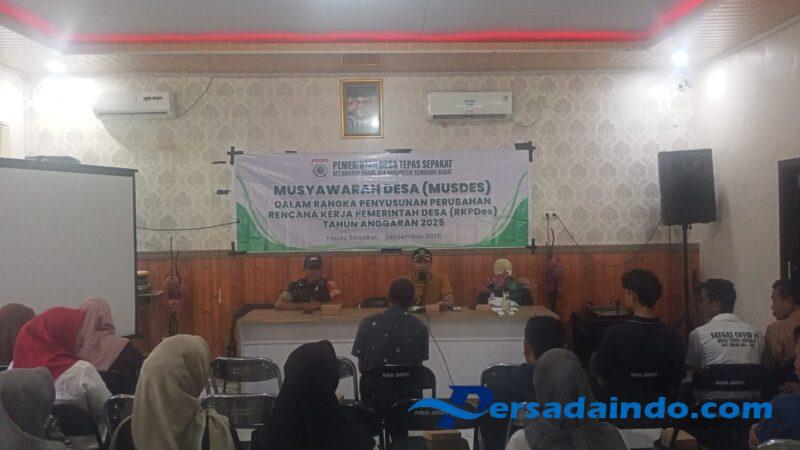 Kegiatan Musdes tersebut membahas penyusunan perubahan Rencana Kerja Pemerintah Desa (RKPDes) Tahun Anggaran 2025. Rapat dipimpin langsung oleh Kepala Desa Tepas Sepakat dengan melibatkan berbagai unsur masyarakat.