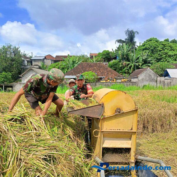 Gianyar – Tegal Tugu, Selasa (18/11/2025) Dalam rangka mendukung program pemerintah di bidang ketahanan pangan, Babinsa Desa Tegal Tugu Sertu I Made Sukajaya melaksanakan pendampingan kegiatan panen padi di lahan milik Sdr. I Made Reka seluas 13 are yang ditanami varietas padi Inpari 32, bertempat di Subak Yangama, Desa Tegal Tugu, Kecamatan Gianyar, Kabupaten Gianyar.