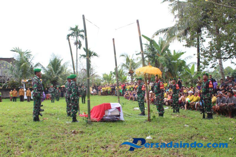 Tabanan – Danramil 1619-01/Tabanan, Kapten Inf I Nengah Sudiana, memimpin upacara perabuan jenazah Alm. Serma I Komang Mudita (Purn) di Setra Desa Denbantas, Kecamatan Tabanan, Jumat (4/7/2025).