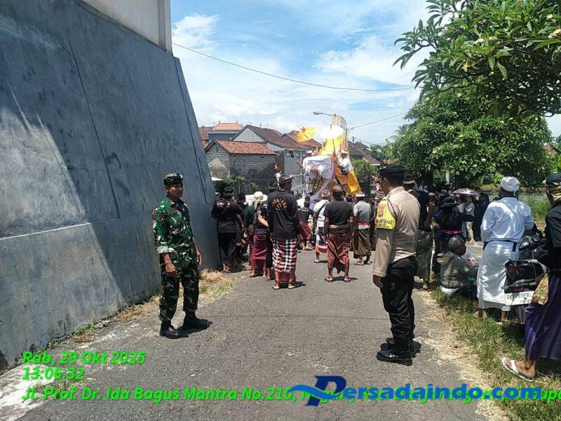 Pagi ini, dengan bersinergi bersama Bhabinkamtibmas dan pecalang kita melaksanakan pengawalan dan pengamanan upacara ngaben almarhum Jro Mangku Rugeg salah satu tokoh agama Dusun Negari agar berjalan tertib dan lancar, “ucap Babinsa Negari Serka gede Adiasa.