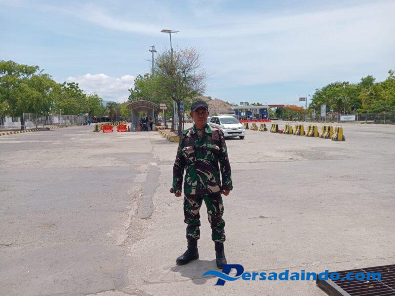 Sumbawa Barat, NTB – Anggota Koramil 1628-04/Poto Tano, Sertu Abdurahman, melaksanakan kegiatan pengamanan (PAM) di area Pelabuhan Penyeberangan Poto Tano, Kabupaten Sumbawa Barat, pada Selasa (04/11/2025).
