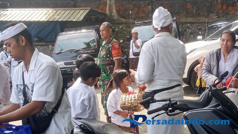 Karangasem – Anggota Koramil 1623-02/Abang dipimpin Serka I Nyoman Sudiarta melaksanakan kegiatan pengamanan kegiatan persembahyangan (Pujawali) di Pura Agung Lempuyang Luhur, Banjar Dinas Purwayu, Desa Tribuana, Kec.Abang, Kab.Karangasem. Kegiatan keagamaan ini dipuput oleh Jero Mangku Nyoman Pasek dan diikuti kurang lebih 150 orang pemedek, pada Kamis (20/11/25).