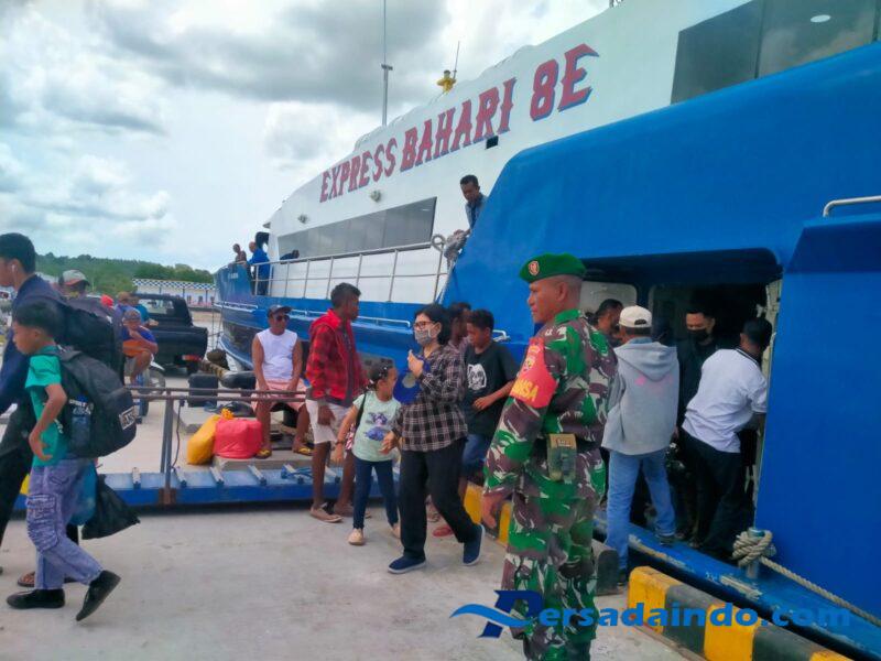 Setelah proses penurunan penumpang dan bongkar muatan selesai, kapal Expres Bahari 8E kembali bersiap untuk melanjutkan pelayaran. Pada pukul 12.20 WITA, kapal tersebut resmi berangkat dari Pelabuhan Ba’a menuju Pelabuhan Tenau, Kupang. Selama proses keberangkatan, personel Piket Koramil tetap berada di lokasi untuk memastikan arus keluar masuk penumpang berjalan tertib dan tidak terjadi gangguan keamanan.
