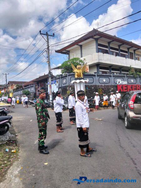 Pengamanan ini melibatkan kolaborasi antara Babinsa, Bhabinkamtibmas, dan Pecalang Desa Kekeran.