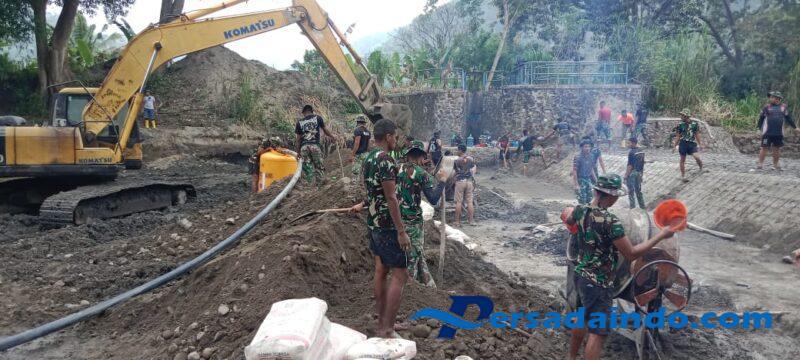 Pada hari ini, personel Satgas TMMD bersama masyarakat setempat melaksanakan pengecoran lantai bendungan sebagai bagian dari proses rehabilitasi infrastruktur irigasi tersebut. Kegiatan ini bertujuan untuk meningkatkan fungsi bendungan dalam mendukung ketahanan pangan dan pengairan sawah masyarakat setempat.