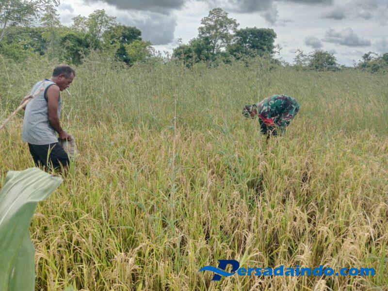 Wujud dukungan TNI khususnya prajurit kewilayahan yaitu Babinsa dalam mendukung ketahanan pangan, dengan Semangat ikut serta terjun langsung ke sawah bantu para petani desa binaannya saat memanen padi, inilah yang dilakukan oleh Babinsa kepada para petani warga desa binaannya.