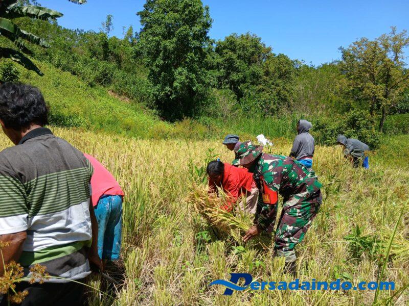 Wujud dukungan TNI khususnya prajurit kewilayahan yaitu Babinsa dalam mendukung ketahanan pangan, dengan Semangat ikut serta terjun langsung ke sawah bantu para petani desa binaannya saat memanen padi, inilah yang dilakukan oleh Babinsa kepada para petani warga desa binaannya.