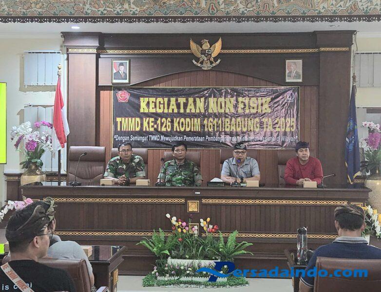 Bali – Badung, Dalam rangka penyuluhan dari kegiatan non fisik di TMMD Ke-126 Kodim 1611/Badung TA. 2025 dengan tema “Semangat TMMD Mewujudkan Pemerataan Pembangunan dan Ketahanan Nasional di Wilayah”. Penyuluhan dilaksanakan di Aula Kantor Desa Bongkasa Pertiwi, Kecamatan Abiansemal, Kabupaten Badung. Pada Selasa, (14/10/25).