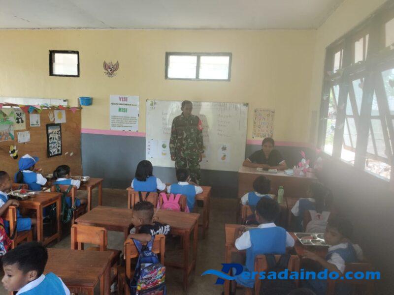 Rote Ndao – Dalam rangka mendukung program nasional peningkatan gizi anak sekolah, Babinsa Koramil 1627-02/Pantai Baru Koptu Mesak Foeh melaksanakan pendampingan pemberian makanan sehat bergizi kepada siswa-siswi di wilayah Kecamatan Pantai Baru, Kabupaten Rote Ndao, pada Rabu (15/10/2025) pukul 07.00 WITA.