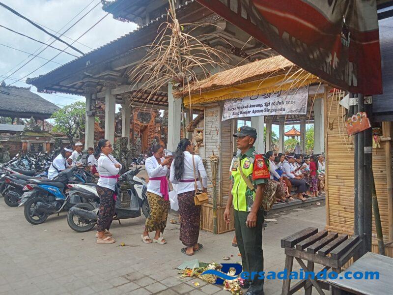 Dalam rangka mendukung kelancaran dan keamanan kegiatan adat masyarakat, Babinsa Desa Singapadu Koramil 1616-05/Sukawati, Serma I Nyoman Gangsar, melaksanakan monitoring dan pengamanan kegiatan Upacara Pitra Yadnya (Nyekah) yang dilaksanakan di Wantilan Banjar Apuan, Desa Singapadu, Kecamatan Sukawati, Kabupaten Gianyar.