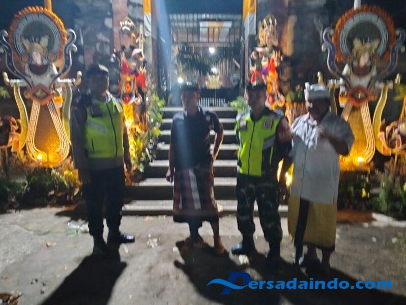 Dalam rangka menciptakan situasi aman dan kondusif selama berlangsungnya kegiatan keagamaan, Babinsa Desa Suwat Koramil 1616-01/Gianyar Sertu Dewa Putu Dwijati Jaya bersama Bhabinkamtibmas Desa Suwat Aiptu Anak Agung Gede Agung bersinergi dengan Pecalang Desa Adat Suwat melaksanakan kegiatan pengamanan dan pengaturan di area Pura Dalem lan Prajapati Desa Adat Suwat, Kecamatan/Kabupaten Gianyar.
