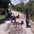 NTT-SIKKA. Babinsa Koramil 1603-04/Kewapante, Kodim 1603/Sikka Pratu Yelfrid Leonardus, gotong royong bersama masyarakat memperbaiki jalan setap...