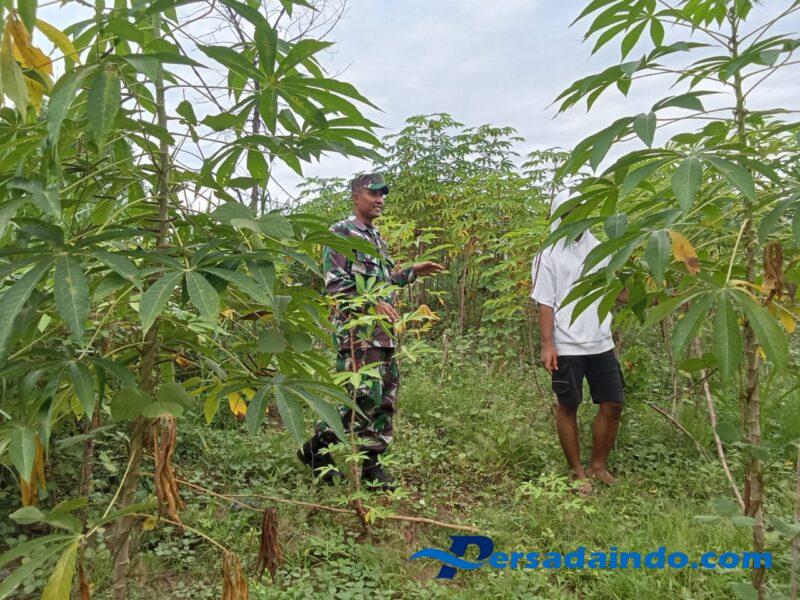 Tejakula, 29 Juni 2025, Dalam rangka mendukung program ketahanan pangan nasional,Babinsa Desa Tembok, Sertu Putu Sudarma, melaksanakan pendampingan kepada petani singkong di wilayah binaannya Desa Tembok Kecamatan Tejakula, Kabupaten Buleleng.