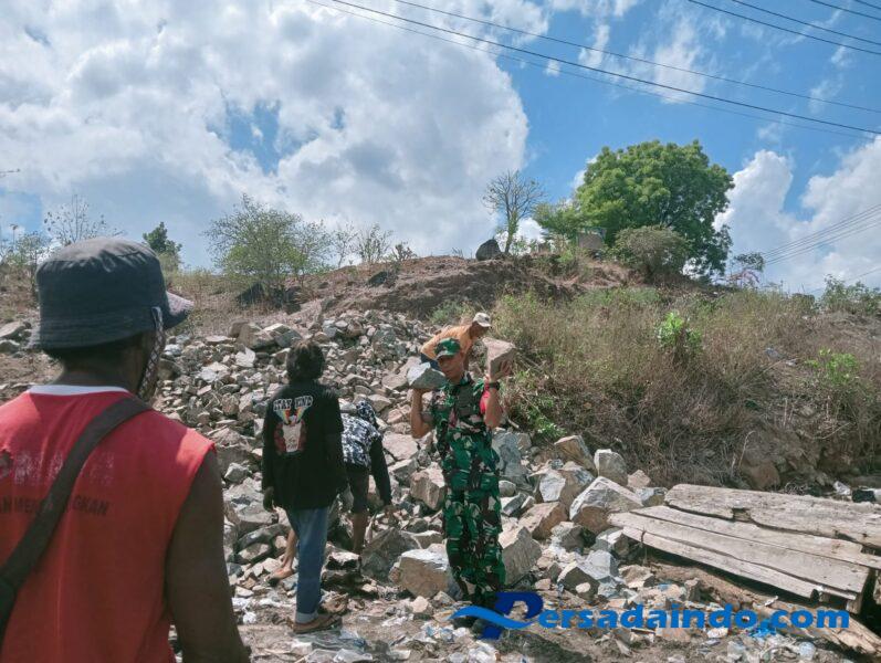 Bima,Donggo _ Babinsa Koramil 1608-05/Donggo, Serka Munir, bersama warga masyarakat menunjukkan semangat gotong royong dengan melaksanakan perbaikan ruas pelabuhan Songgela di Kelurahan Ule, Kota Bima, pada Senin (14/10/2025). Kegiatan ini menjadi bukti nyata kerja sama yang erat antara TNI dan masyarakat setempat dalam menjaga dan memperbaiki fasilitas umum demi kenyamanan bersama.
