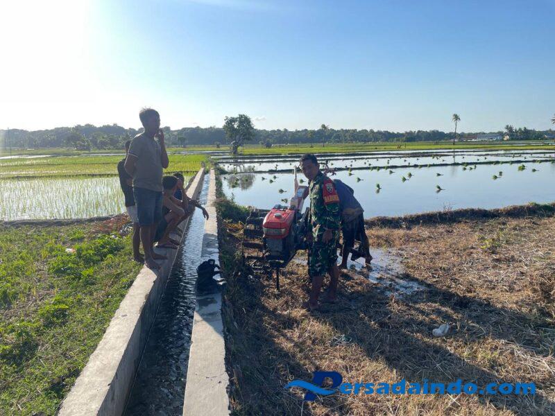 NTT – Sumba Timur.Babinsa Koramil 02/Rindi Umalulu, Kodim 1601/Sumba Timur, Praka Gusnanda melaksanakan Ketahanan Pangan (Hanpangan) dengan membantu membajak sawah menggunakan traktor di lahan seluas 70 are,milik Bapak Yeremias Bulu di Desa Haikatapu, Kecamatan Rindi, Kabupaten Sumba Timur. Kamis (16/10/2025)