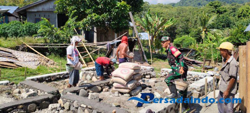 NTT – Ende/Detukuli, Babinsa koramil 04/Maurole Praka Khairil Mustafa melaksanakan kegiatan membantu masyarakat membuat pondasi rumah milik warga Binaannya di desa Wolomuku kecamatan Detukeli, kabupaten Ende, Jumat (23/05/2025).