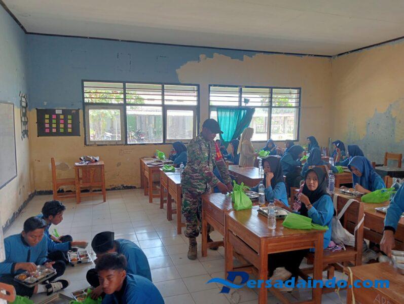 Sumbawa Barat — NTB, Dalam mendukung peningkatan gizi anak sekolah, Babinsa Desa Beru, Sertu Ismail dari Koramil 1628-05/Jereweh melaksanakan kegiatan pendampingan Program Makan Sehat Bergizi (MSG) di SMPN 3 Satap Jelenga, Desa Beru, Kecamatan Jereweh, Kabupaten Sumbawa Barat, Jum’at (17/10/2025).