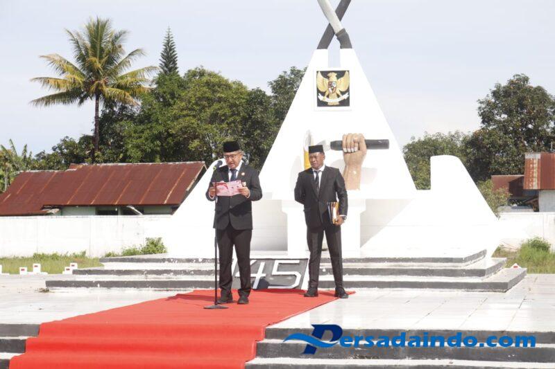 Bupati Belu saat membacakan amanat Menteri Sosial RI menyampaikan bahwa hari ini, di bawah langit Indonesia yang merdeka, kita menundukkan kepala penuh hormat mengenang para pahlawan bangsa. Mereka bukan sekadar nama yang terukir di batu nisan, melainkan cahaya yang menerangi jalan kita hingga hari ini.