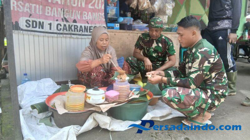 “Saya pikir di lokasi TMMD ini ramai, banyak orang kerja. Siapa tahu rezekinya lebih baik dari pasar,” tutur Inaq Alimudin sambil melayani prajurit yang membeli dagangannya.