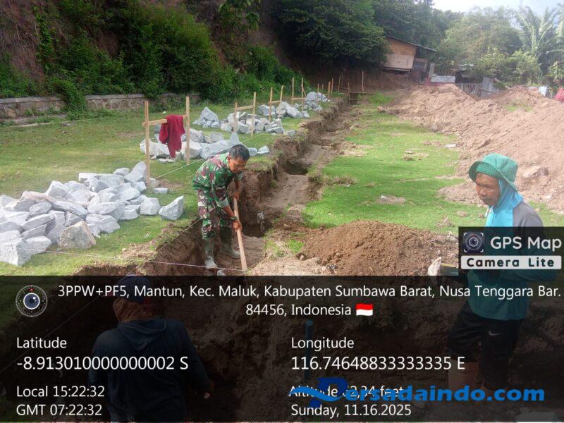 Sumbawa Barat – Perkembangan pembangunan Koperasi Desa Kelurahan Merah Putih (KDKMP) pada hari Minggu, 16 November 2025 di wilayah Kodim 1628/KSB menunjukkan progres awal yang positif, khususnya pada lokasi KDKMP Desa Mantun, Kecamatan Maluk, Kabupaten Sumbawa Barat.