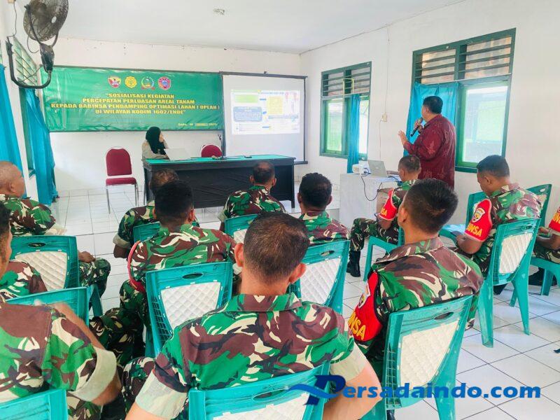 Ende, — Dalam upaya mendukung program ketahanan pangan nasional, Kodim 1602/Ende menggelar kegiatan Sosialisasi Percepatan Perluasan Area Tanam bagi Babinsa Pendamping Optimasi Lahan (OPLAH) yang berlangsung di Aula Kodim 1602/Ende, Kamis (16/10/2025).