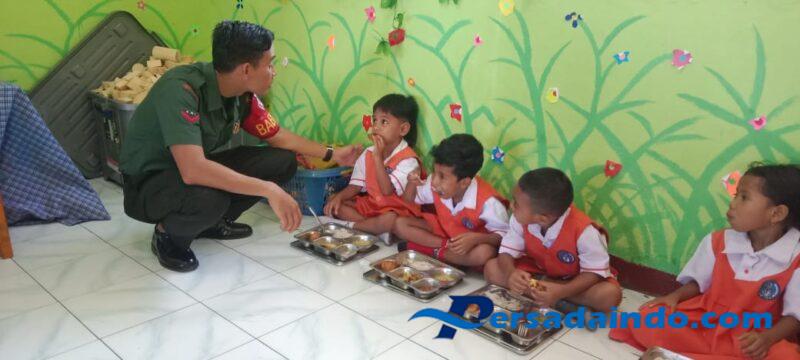 Lembata — Dalam rangka mendukung program pemerintah dalam meningkatkan gizi anak usia dini, Babinsa Koramil 1624-03/Lewoleba, Kopda Suhardi, melaksanakan kegiatan monitoring dan pendampingan pelaksanaan Program Makanan Bergizi Gratis (MBG) dari Badan Gizi Nasional (BGN) di wilayah Kabupaten Lembata, Senin (20/10/2025).