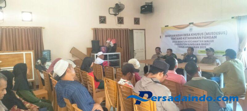 Sumbawa Barat – NTB, Babinsa Desa Mantun, Kecamatan Maluk, Kabupaten Sumbawa Barat, Serda Anton Hariyanto, menunjukkan kepedulian dan peran aktifnya dalam mendukung pembangunan desa dengan mendampingi kegiatan Musyawarah Desa Khusus (Musdesus) tentang ketahanan pangan yang digelar di Kantor Desa Mantun, Selasa (16/9/2025).