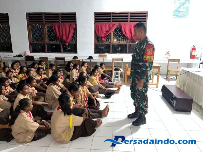 Eban – Dalam upaya menanamkan nilai-nilai bela negara dan kebangsaan serta memperluas ilmu pengetahuan, Satgas Pamtas RI-RDTL Sektor Barat Yonarhanud 2 Kostrad memberikan pembekalan materi pada kegiatan Perkemahan di SMA Mutis Eban, Kec. Miomaffo Barat, Kab. TTU. Minggu (19/10)