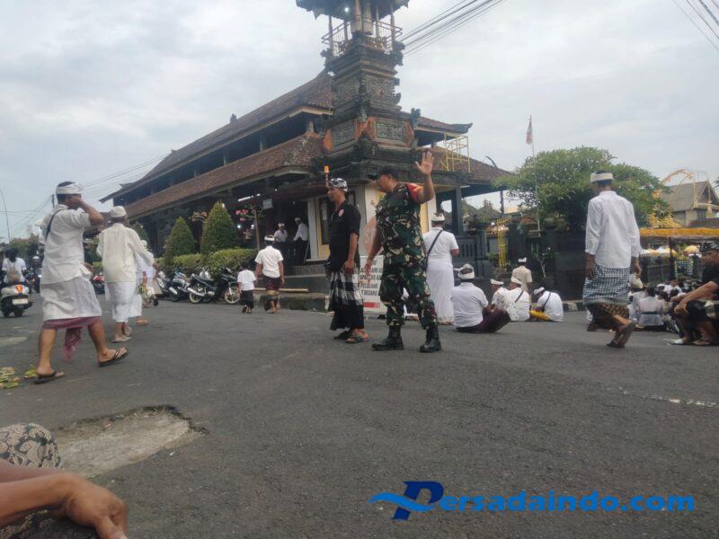 Klungkung, – Demi mewujudkan keamanan dan kelancaran berlangsungnya persembahyangan dalam rangka piodalan di Pura Buitan Lingkungan Besang Kangin , Kelurahan Semarapura Kaja , Babinsa Serka Wayan Wardana melaksanakan pengawalan dan pengamanan, Kamis ( 13/11/25 ).