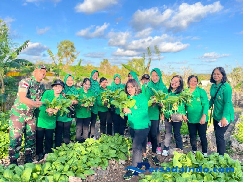 Rote Ndao – Komandan Kodim 1627/Rote Ndao, Letkol Kav Kurnia Santiadi Wicaksono, S.H., bersama Ketua Persit Kartika Chandra Kirana (KCK) Cabang XLII Kodim 1627/Rote Ndao, Ny. Sarlyta Rahmawati, serta pengurus Persit lainnya, melaksanakan kegiatan panen sayur mayur yang ditanam di lahan pekarangan Makodim, Selasa (tanggal disesuaikan).