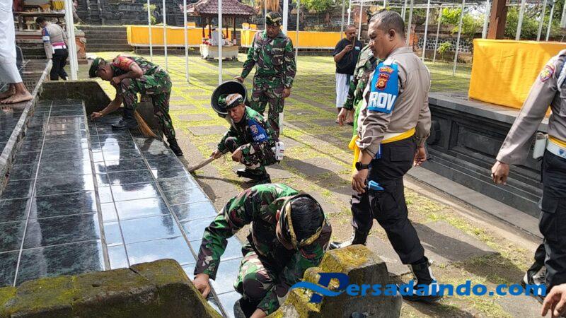 KARANGASEM – Puluhan personel Kodim 1623/Karangasem dan Polres Karangasem melaksanakan kegiatan persembahyangan bersama dan bhakti sosial dalam rangka menjaga sinergitas TNI-Polri di wilayah Kab.Karangasen.
