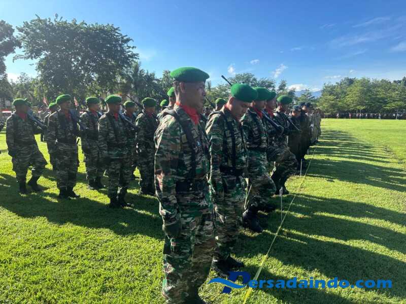 Dandim 1614/Dompu yang diwakili oleh Kasdim 1614/Dompu Mayor Inf. I Wayan Sulendra, S.H., M.H. menghadiri kegiatan Upacara Peringatan Hari Jadi Kabupaten Dompu ke- 210 dengan tema Harmoni Dou La’bo dana menuju Dompu Maju di lapangan beringin pendopo, Kabupaten Dompu. Jumat (11/04/2025).