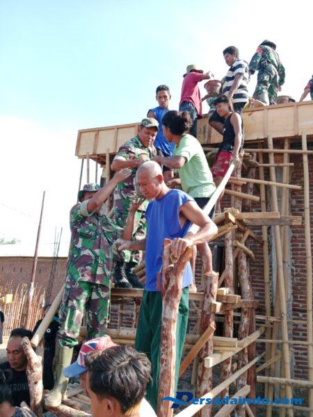 Anggota Koramil bersama warga setempat bahu membahu menyelesaikan pengecoran pondasi musholla dengan dipimpin langsung oleh Danramil Woha, Kapten Cba Iwan Susanto, S.H. Suasana kerja bakti berlangsung harmonis dan kekompakan tersaji nyata saat masyarakat dan TNI bekerja sama membangun fasilitas ibadah tersebut.