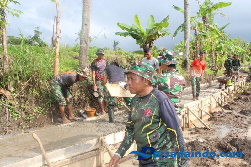 Warga setempat juga tak kalah antusias. Mereka ikut bergotong royong membantu proses pembangunan, mulai dari mengangkut material, menyediakan konsumsi, hingga ikut dalam pekerjaan fisik. “Kalau hanya mengandalkan tenaga TNI, pekerjaan tentu akan lebih lama. Dengan gotong royong, pekerjaan bisa lebih cepat selesai dan hasilnya kita rasakan bersama,” kata salah satu petani, Wayan Sudarma.