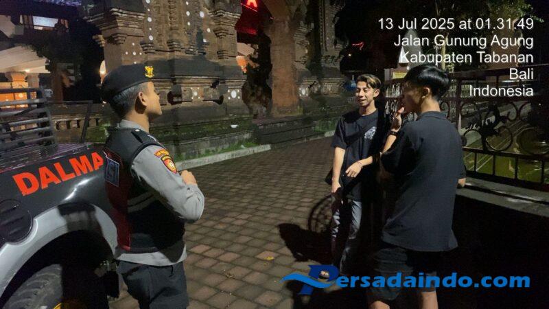 Polda Bali – Polres Tabanan – Humas Tabanan. Dalam upaya menjaga stabilitas keamanan dan ketertiban masyarakat (kamtibmas) di jam-jam rawan, Sat Samapta Polres Tabanan menggelar kegiatan Patroli Jalan Kaki Subuh Keliling Perintis Presisi pada Minggu dini hari, 13 Juli 2025. Kegiatan yang berlangsung dari pukul 00.30 Wita hingga 03.00 Wita ini dipimpin oleh PS. Kasubnit 1 Dalmas Aipda I Putu Astika Atmaja bersama dua personel lainnya, menyasar sejumlah titik strategis di wilayah hukum Polres Tabanan.
