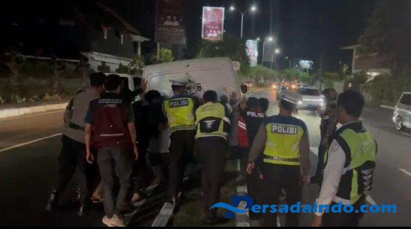 Badung – Aksi sigap personel Polres Kawasan Bandara I Gusti Ngurah Rai patut diapresiasi. Pada Rabu malam (23/7/2025), bersama warga sekitar, polisi membantu mengevakuasi sebuah mobil box Grandmax putih yang mengalami kecelakaan tunggal dan tersangkut di median jalan kawasan jalur keluar Bandara Ngurah Rai, tepatnya dekat loading dock.