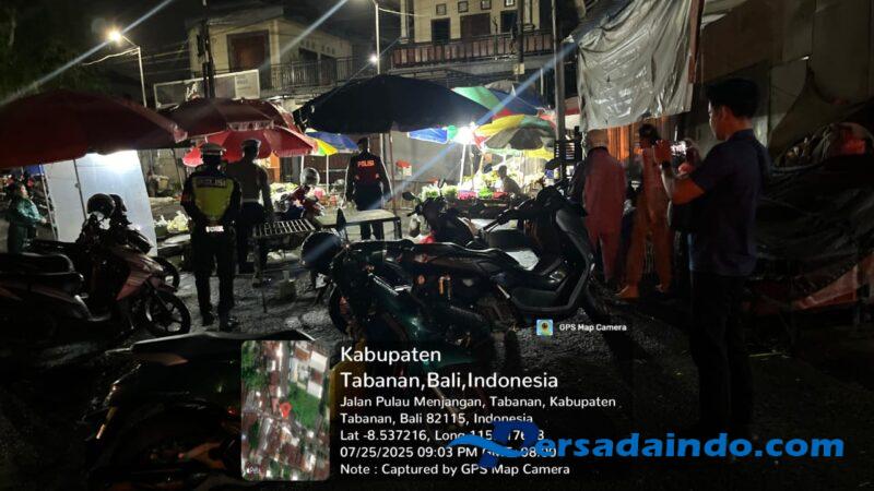 Polda Bali – Polres Tabanan – Humas Tabanan. Polres Tabanan kembali menunjukkan komitmennya dalam menjaga keamanan dan kenyamanan masyarakat dengan menggelar kegiatan Blue Light Patrol pada Jumat malam, 25 Juli 2025. Kegiatan ini berlangsung mulai pukul 20.00 hingga 22.00 Wita di sejumlah titik keramaian yang ada di wilayah hukum Polres Tabanan. Patroli ini dipimpin langsung oleh Perwira Pengawas (Pawas) IPTU I Ketut Padnya dengan melibatkan 17 personel dari gabungan piket fungsi.