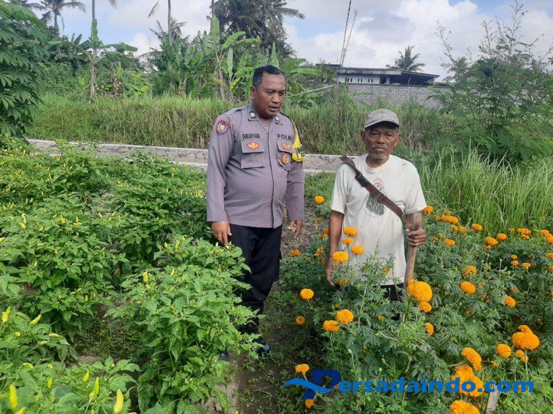 Dalam sambang tersebut, petani lokal bernama I Made Jengki turut didampingi untuk diberikan edukasi serta pendampingan dalam mengelola lahan seluas 2 are yang ditanaminya dengan tanaman cabe dan bunga gumitir. Selain menyampaikan pentingnya menanam tanaman yang bernilai gizi dan ekonomi, Polsek Blahbatuh juga memberikan motivasi kepada petani agar tetap semangat menjalani profesi sebagai pilar utama ketahanan pangan desa.