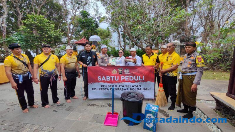 Badung — Dalam upaya membangun keharmonisan antara Polri dengan masyarakat serta menjaga keseimbangan hubungan spiritual, sosial, dan lingkungan, Polsek Kuta Selatan melaksanakan kegiatan Program Sabtu Peduli Bakti Religi di Pura Nusa Dharma, Kawasan ITDC, Kelurahan Benoa, Kecamatan Kuta Selatan, Kabupaten Badung, Sabtu (12/7/2025).