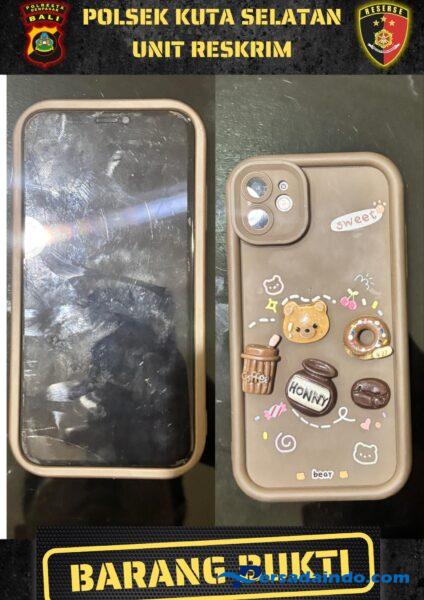 Dari tangan pelaku, polisi berhasil mengamankan barang bukti berupa 1 (satu) unit handphone iPhone 11 warna ungu beserta casing coklat dan kotak kemasan handphone. Pelaku berikut barang bukti langsung dibawa ke Mapolsek Kuta Selatan untuk proses hukum lebih lanjut.