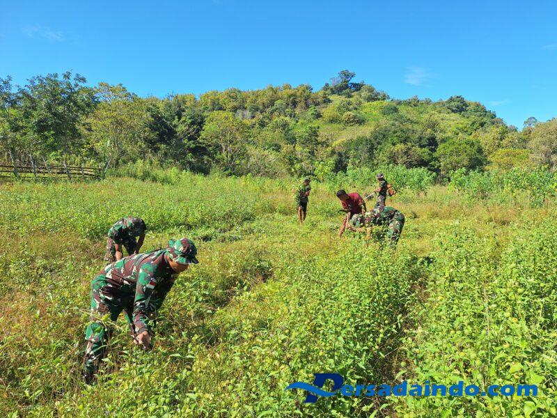 Belu – Pos Dafala bantu masyarakat membuka lahan perkebunan di Dusun Dubasa, Desa Dafala, Kecamatan Tasifeto Timur, Kabupaten Belu. Jumat (20/06/2025).