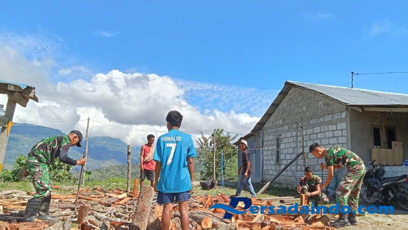 • Pos Fohuk Satgas Yonif 741/GN Dukung Kegiatan Adat Dengan Gotong Royong Siapkan Kayu Bakar Bersama Pemuda Desa