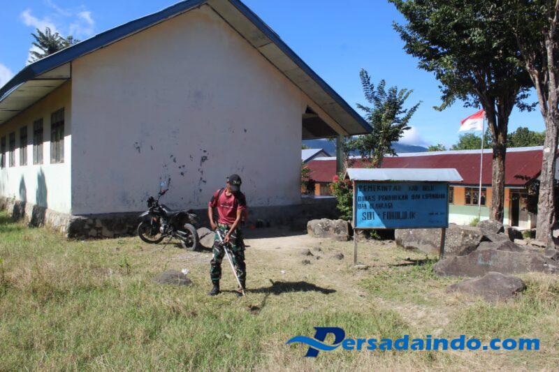 • Pos Fohululik Satgas Yonif 741/GN Laksanakan Pembersihan Sekolah dan Cukur Gratis di Perbatasan